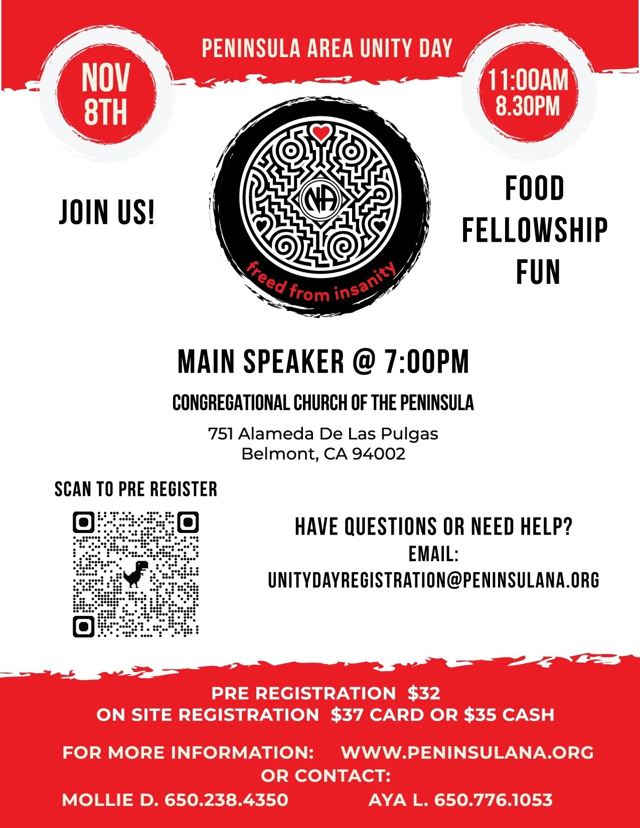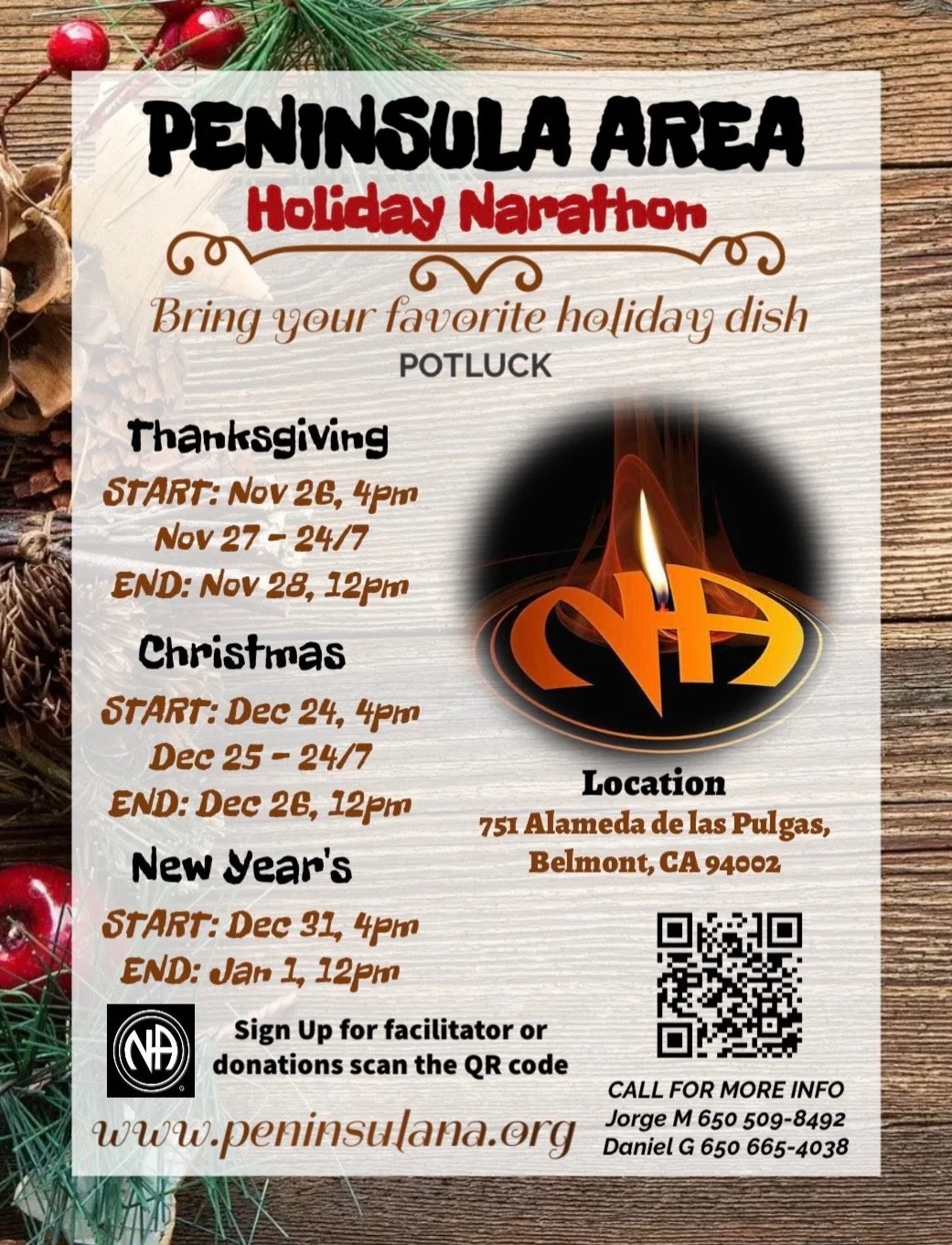 Upcoming events in the Peninsula Area of Narcotics Anonymous