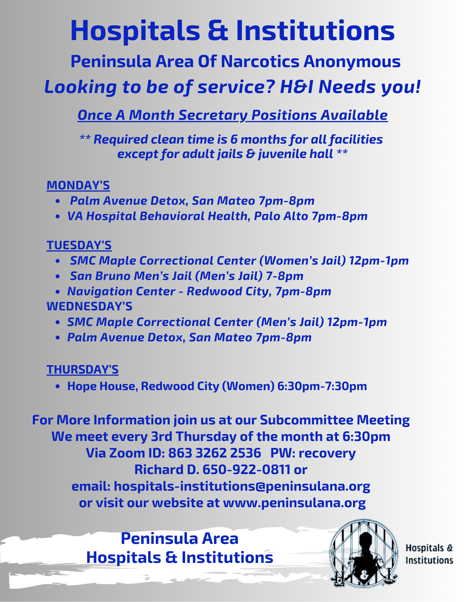 Group Service Representative Resources To Review: Proposed Unity Day Guidelines Current ASC Reports ASC Minutes PASC Motion Log GSR Check-In Sheet GSR Report to Group Literature Order Form GSR Role and Responsibilities 2025 ASC Inventory 2024-2025 ASC Budget Archived ASC Minutes & Reports Calendar Open Positions Meetings Committees New Flyers Help keep this space fresh and cleanTake down expired flyersEmail ascinfoofficer@peninsulana.org